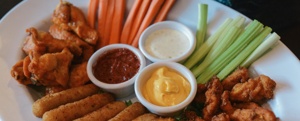 Deliciosos fire wings, chicken crunch, fantastic fries y crujientes cheese sticks, acompañado con aderezos, zanahoria y apio.