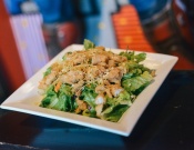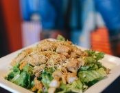 La fresca combinación de lechuga, cacahuate y tallarines, Acompañados de crujientes tiras de pollo empanizadas. ¡Bañada con nuestro aderezo oriental de la casa!