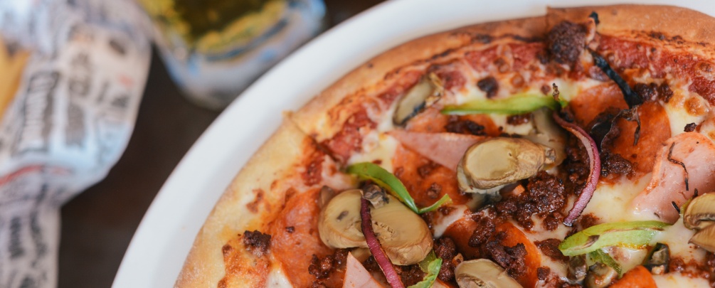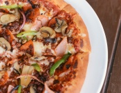 Delicioso chorizo Comicx, acompañado de pepperoni, salsa marinara, champiñones. cebolla, pimiento verde y queso mozzarella.