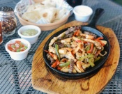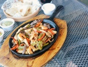 Magnifica combinación de arrachera, pollo y camarones parrillados y sazonados al estilo Comicx con pimientos verdes y rojos, cebolla asada, servidas en sartén caliente acompañadas de salsa pico de gallo, guacamole y crema.