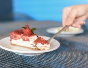 Para cerrar con broche de oro no hay nada mejor que una deliciosa porción de pastel de frambuesa decorado con hojas de menta y por supuesto frambuesas.